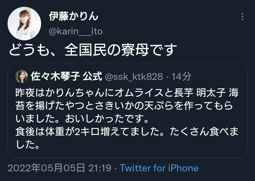 https://twitter.com/karin___ito/status/1522189235369181184701: 君の名は(乃木坂ラジオの時間) 2022/05/05(木) 21:29:13.15 ID:LMrxaBded0505