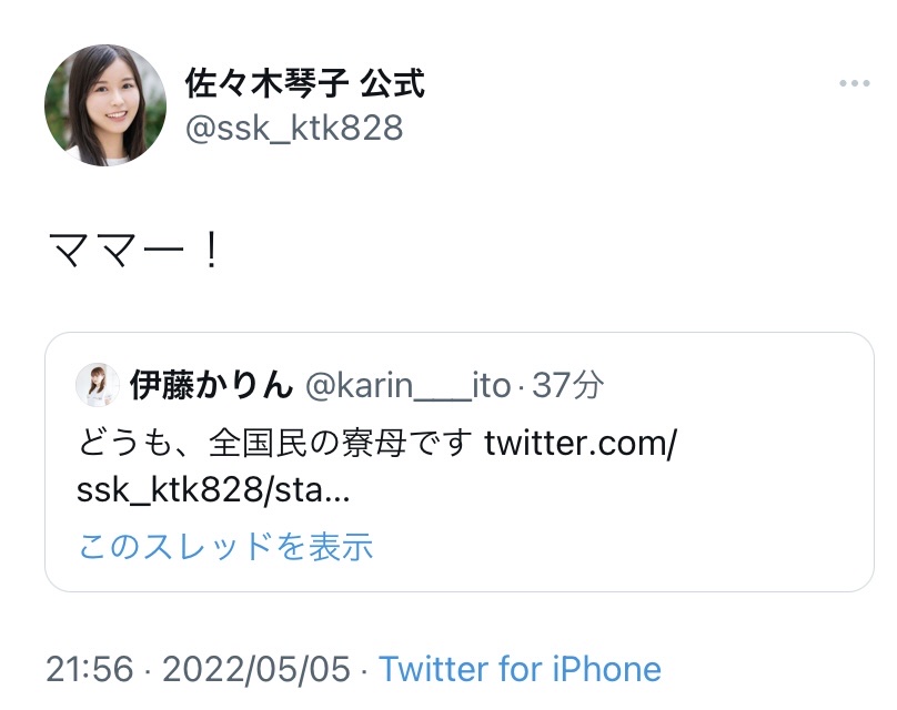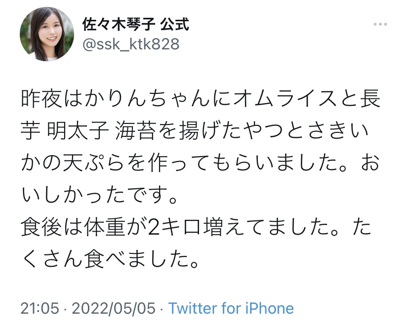 — 佐々木琴子 公式 (@ssk_ktk828) May 5, 2022